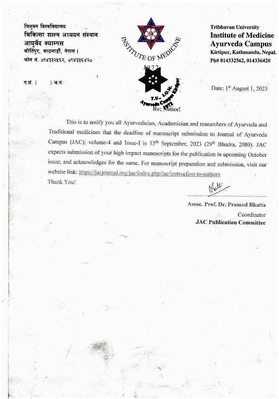 Journal of Ayurveda Campus (JAC) organized its Advisory & National Editorial...